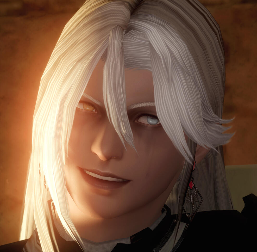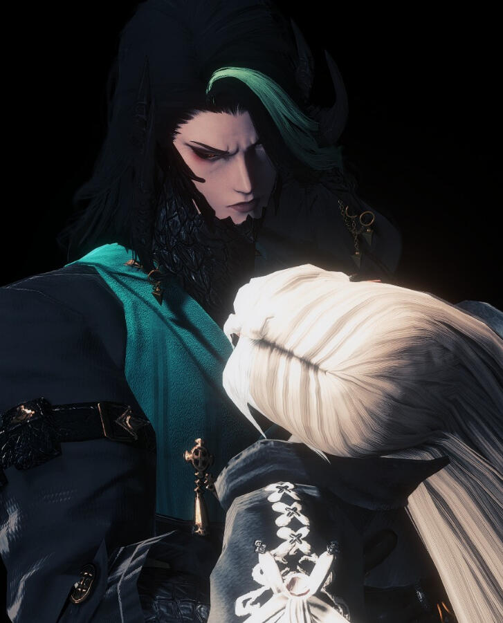 tora's greatest mistake, yet one he would make again.king thordan had lahabrea by the heel. finally, they were to be rid of a troublesome ascian - but tora couldn't abide. he, in some way, had loved lahabrea - whilst he had stolen thancred, of course, but still. in his infinite wisdom - tora trapped lahabrea's soul in the auracite. with thancred's aether, weakened from the lifestream, tora sees several birds and one stone - the men he loves, a single body, and a cure for thancred's weakened aether.and yet, he gets none of these things - to say there is still a lahabrea or a thancred, after their souls become so mixed, is impossible - and thancred's body can barely handle the brimming creation magick of an ascian, his nerves alight in a chronic pain. but if tora regrets it now, after all he's done, he'll fall apart. so tora will love him.